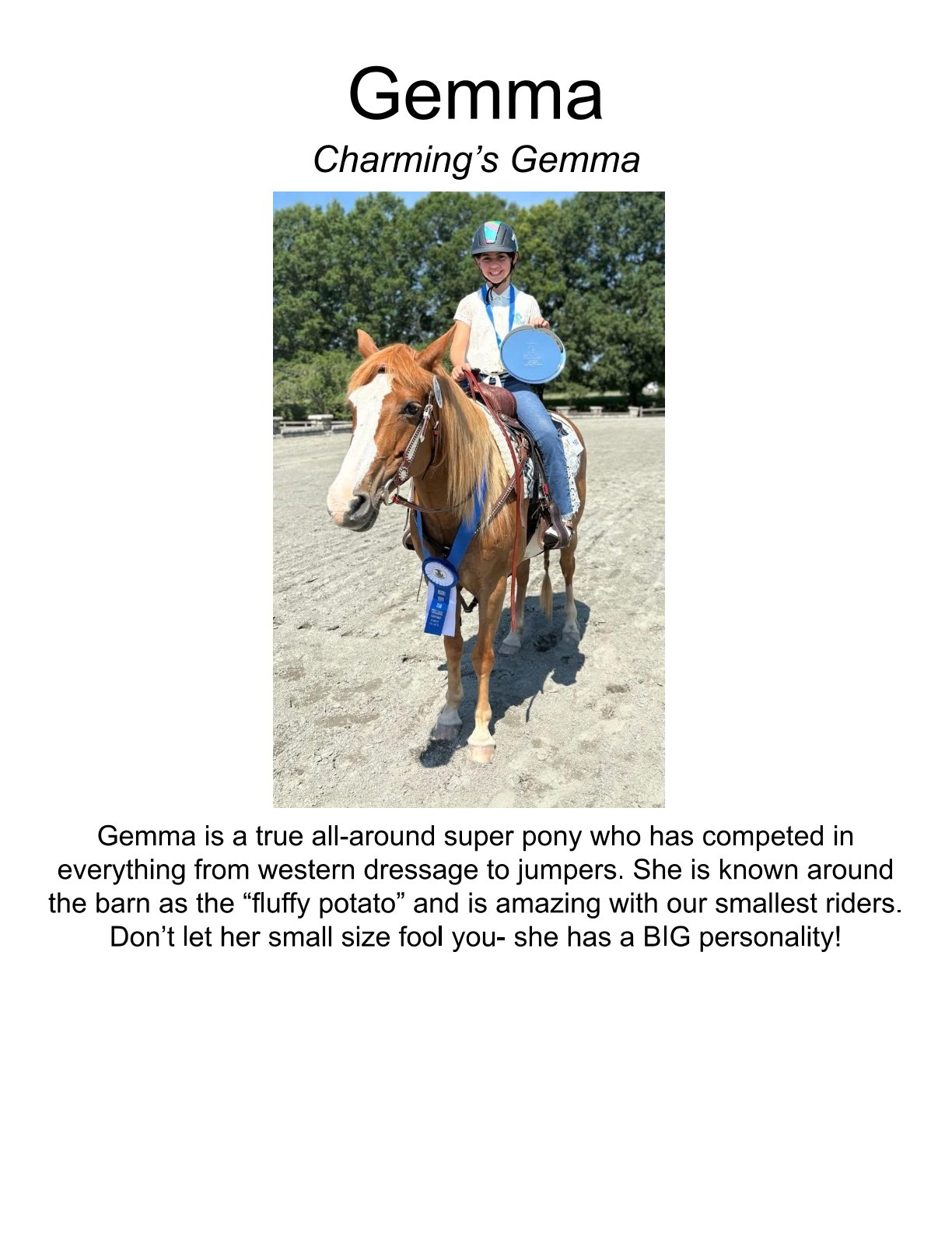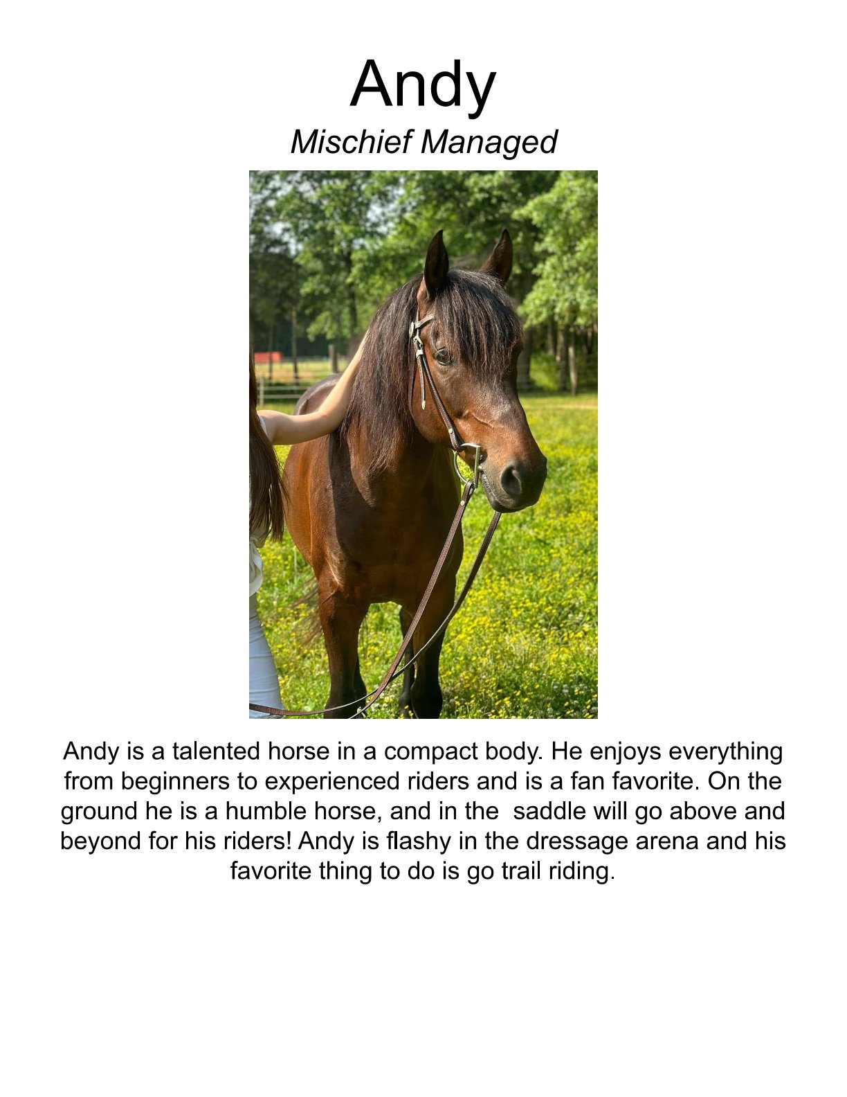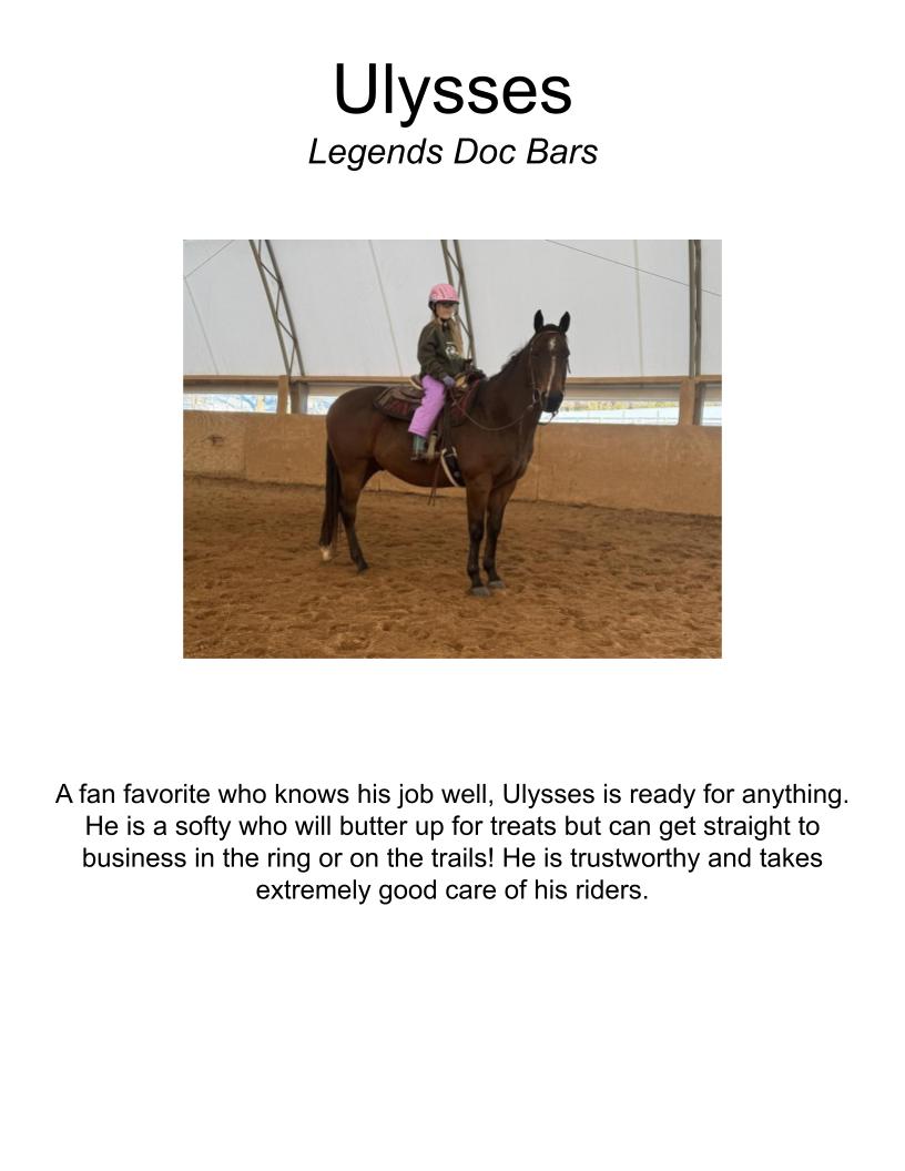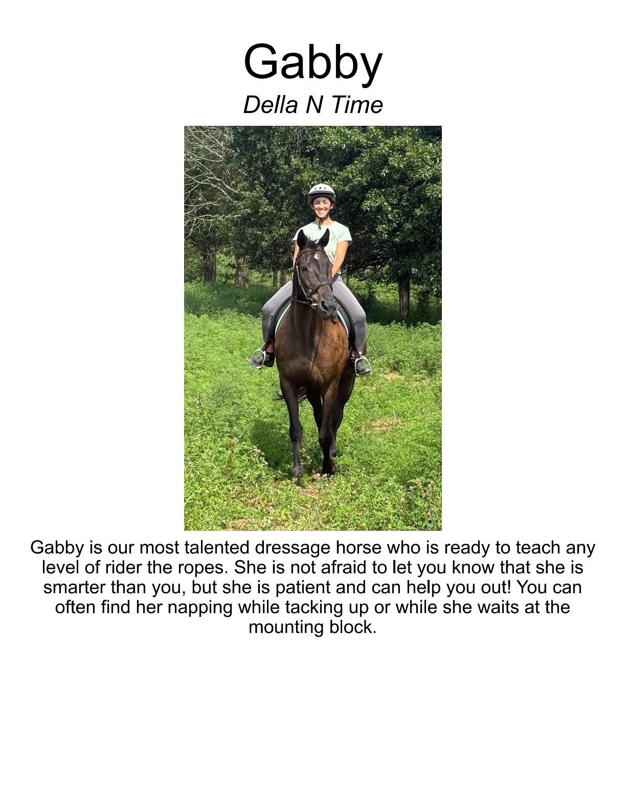 Please arrive in a timely manner for your lesson wearing long pants and a heeled boot or shoe.