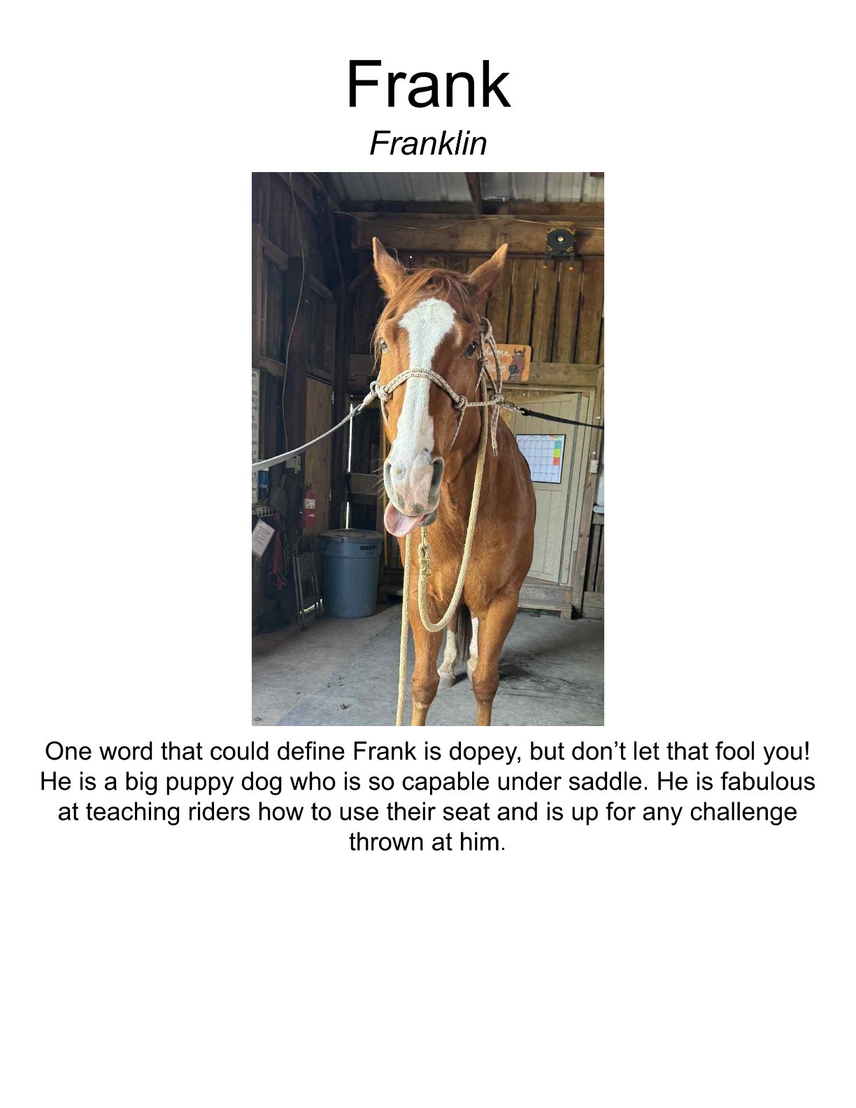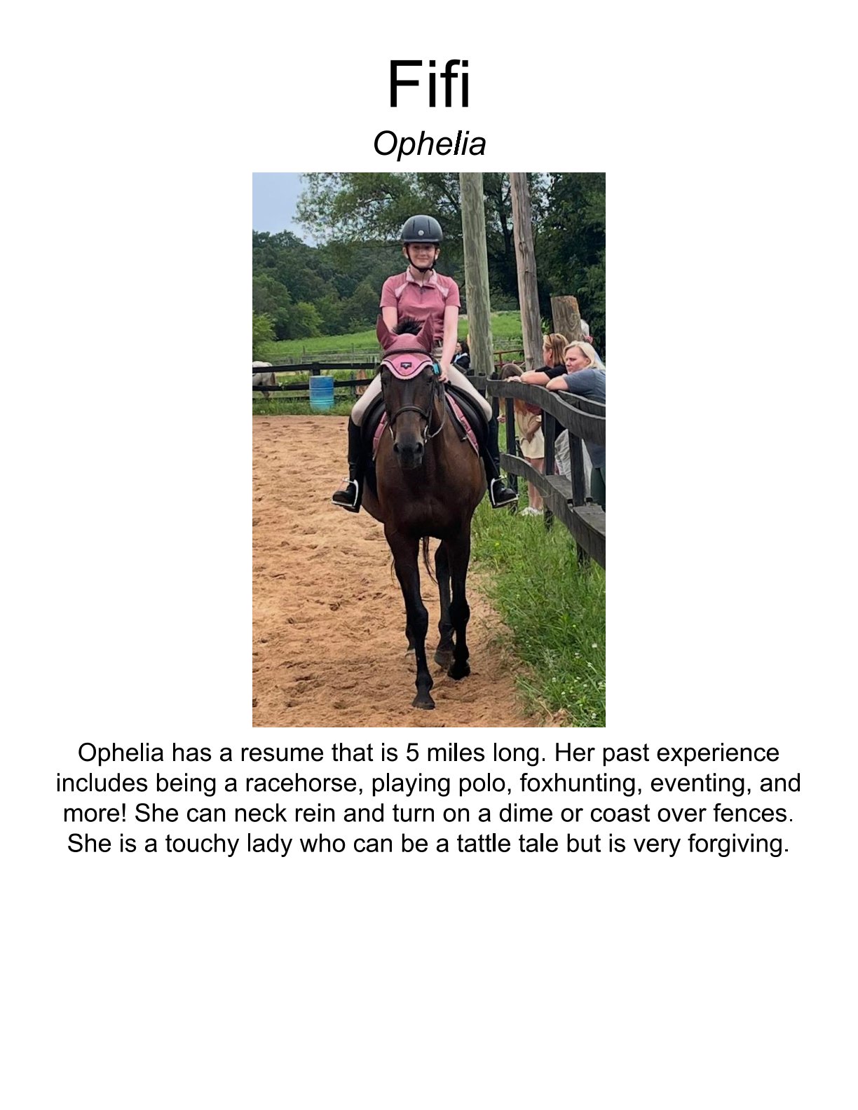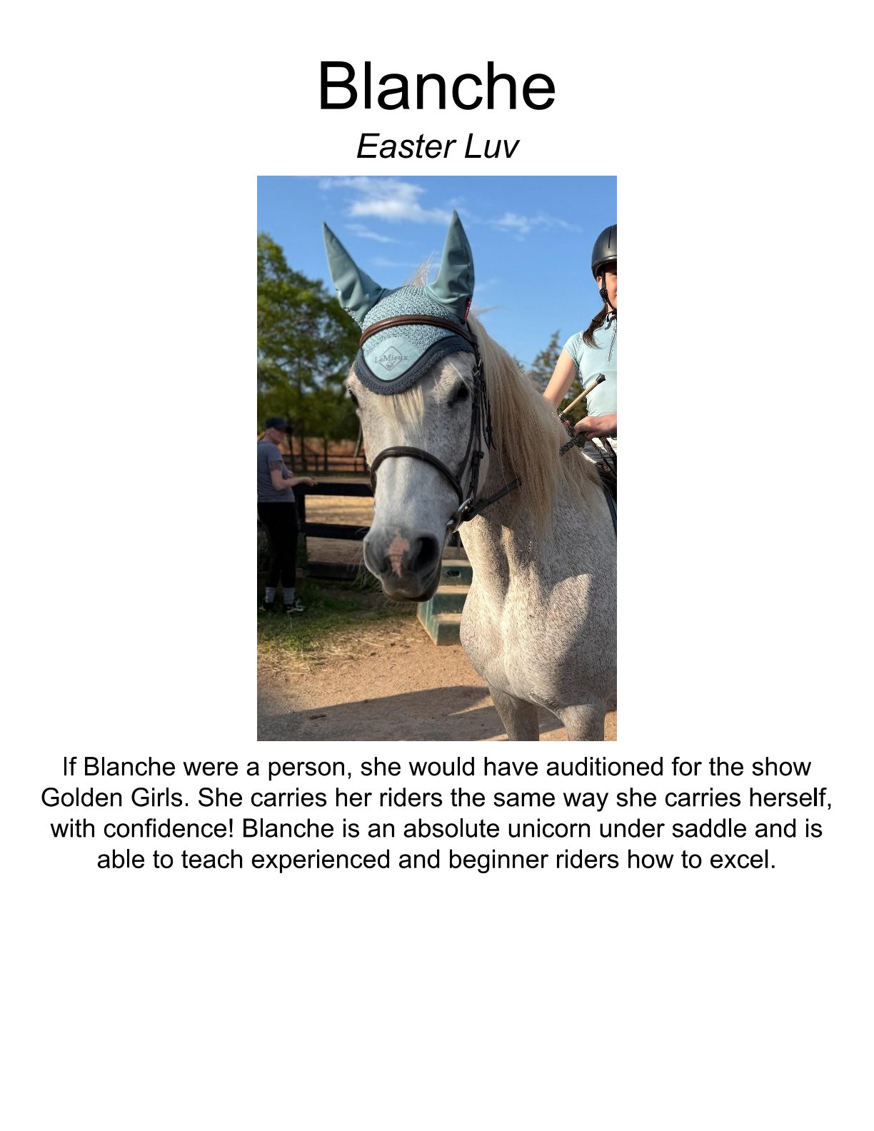 Please arrive in a timely manner for your lesson wearing long pants and a heeled boot or shoe.